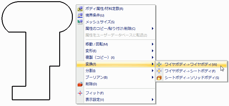 (または右クリックしてメニューを表示させ、[変換]-[シートボディへ変換]をクリックします。)