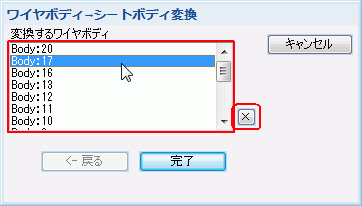 パラメータ入力ダイアログに列挙されているワイヤボディを選択すると、