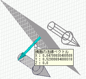 鏡面上の点と鏡面の法線ベクトルを指定してください。