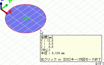 スケッチ中に中心スナップをONにしていると、円弧または球面上にカーソルが来た時、 その中心座標と、中心座標の属するボディがハイライトされて座標値を拾うことができます。 中心座標がハイライトされた場合には、ツールチップに(中心)が表示されます。
