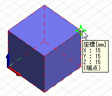 スケッチ中に端点スナップをONにしていると、既存ボディの端にカーソルが来た時、 その端点と、端点の属するボディがハイライトされて座標値を拾うことができます。 端点がハイライトされた場合には、ツールチップに(端点)が表示されます。