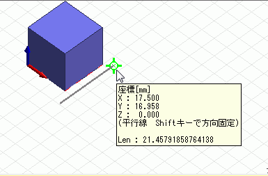 平行線スナップ時は、ツールチップに(平行線)が表示されます。