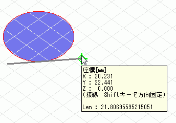 接線スナップ時は、ツールチップに(接線)が表示されます。
