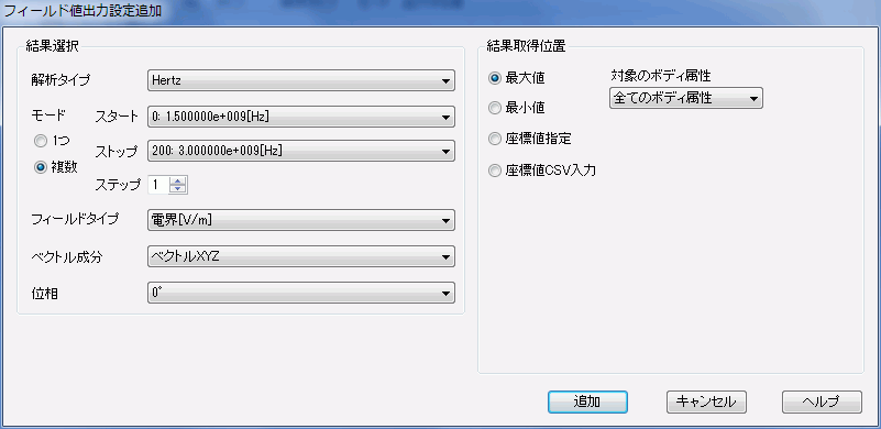 ホーム / パラメトリック解析 / フィールド値出力設定追加