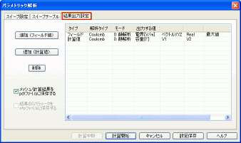 [結果出力設定]タブで何の結果を出力するか設定します。