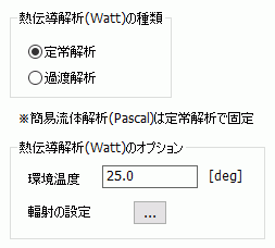 簡易熱流体解析[Pascal/Watt]の解析条件を設定するタブです。