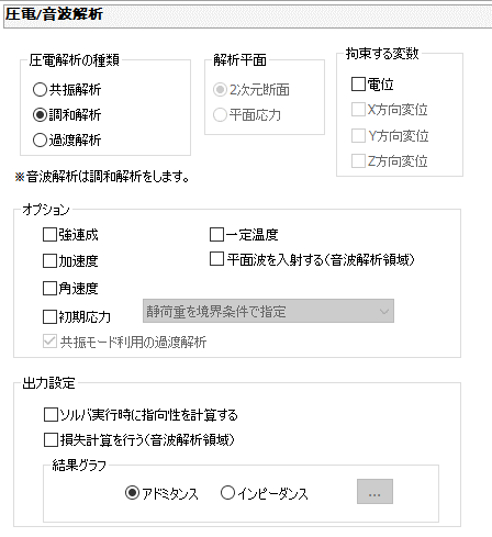 ホーム / 解析条件の設定 / 解析条件タブ一覧 / 圧電音波解析タブ