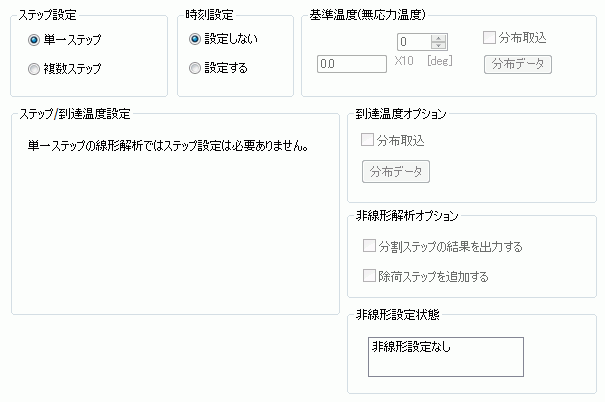 ステップ設定が[複数ステップ]([多段階熱荷重解析])、時刻設定が[設定しない]の場合に、