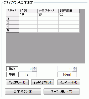 ステップ設定が[多段階熱荷重解析]の場合に、[温度グラフ]ボタンを押すと時刻と温度の関係をグラフで確認することができます。