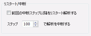 リスタート解析を行う場合、前回の中断ステップ以降をリスタート解析する をチェックします。(解析を最低一回、中断している必要があります。)
