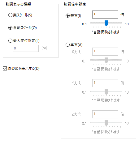 変位図を描く時の強調表示の設定方法を指定します。