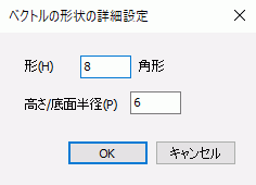 表示ベクトルの高さ/底面半径を指定します。大きい値を設定するほどよりシャープな多角錐となります。