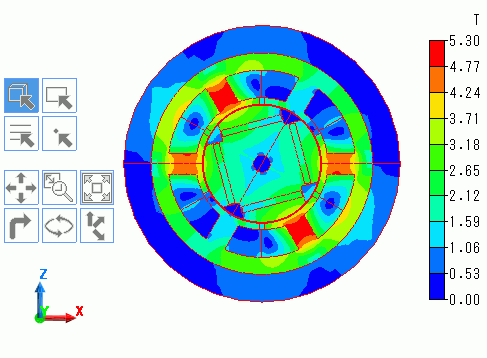 磁場過渡解析で回転機の場合のみ有効になります。 モデルの形状に応じてアニメーションの進行間隔を自動決定します。