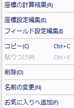 任意座標の表示設定の右クリックメニュー・座標の計算結果 選択した設定で現在の表示結果で座標の計算結果を表示します。