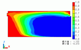 例えば、拡散物質が流体主成分に対して軽い場合は、浮力により天井付近にたまる傾向がみられます。