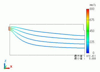 以下に流線を示します。ドア部から換気扇に向かって流線が描画されています。