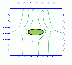 流体の周囲の面はの境界条件は、壁境界条件か流れ境界条件のいづれかになります。