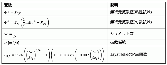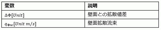 以下のように、無次元拡散値Φ+を定義すると、u+とΦ+は一定の関係があります。