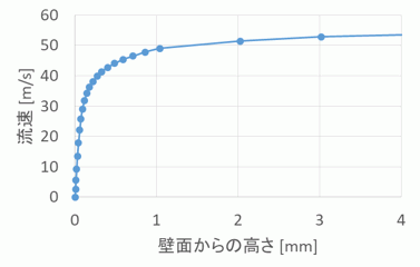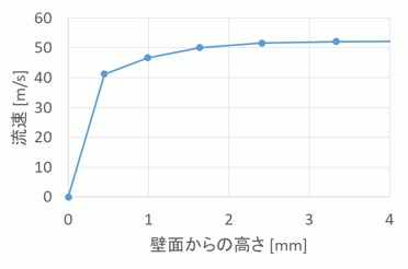 次に、横軸を壁面からの高さ、縦軸を流速でプロットした結果を示します。
