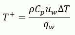 以下のように、無次元温度T+を定義すると、u+とT+は一定の関係があります。