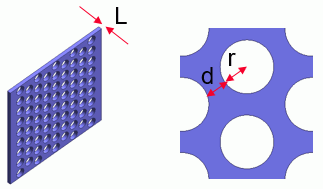 例として、穴あき多孔板モデルを多孔質体として使用する場合を考えます。
