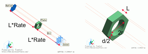ここで、厚みに対する流体領域の長さ:Rateとします。