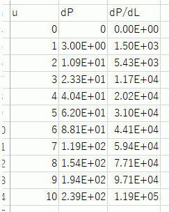 ・2次式の係数は、流速と単位長さ当たりの圧力損失の関係であるため、圧力損失を板厚L = 2 x 10^-3 [m] で割ったdP/dLに換算します。