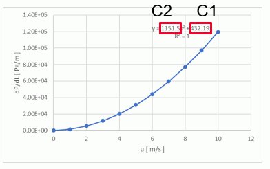 係数を求めるには、流速[m/s]と圧力損失[Pa]、多孔質領域の板厚[m]のデータが必要となります。