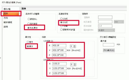 この場合、多孔質体の係数は自動的に計算されます。