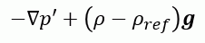 ナビエ・ストークス方程式の圧力項と重力項は、基準密度を用いて補正圧力項と浮力項に分離することができます。