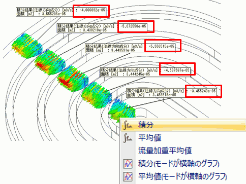 ・任意の断面を選択して、右クリックメニューから積分の取得を行う。