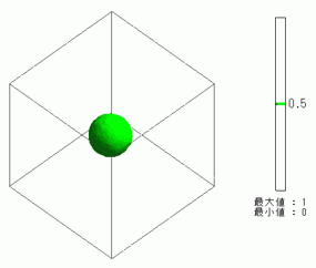 境界は遷移領域の幅を持っていることになりますが、α1 = α2 = 0.5の等値面を境界とみなすこともできます。