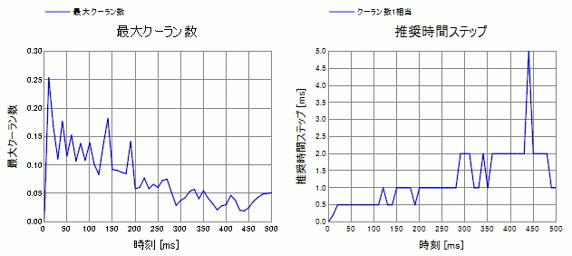 また、解析領域内の最大クーラン数、及び最大クーラン数から算出できる推奨時間ステップを確認することができます。