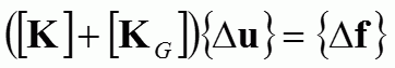 [KG]は幾何剛性行列であり、解析①の変位、応力がこの行列に反映されます。