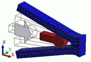 半円状の赤いボディが長方形状の青いボディに押し付けられ接触境界面が大きく変形しています。