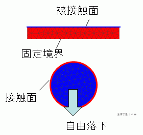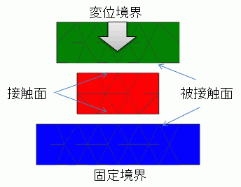 上の例は、被接触面の裏側の位置に接触面が設定されているモデルです。