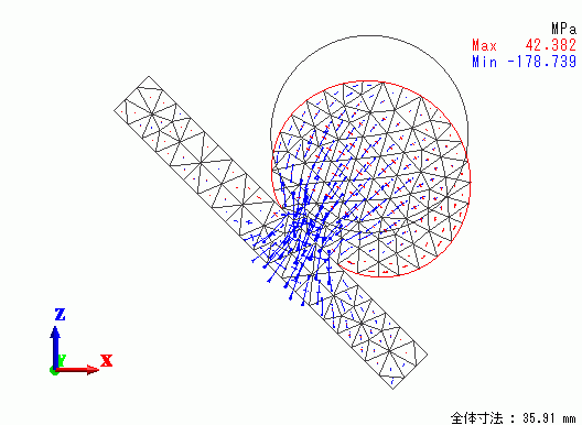 摩擦係数を非ゼロに設定することによって摩擦を考慮した接触解析が可能となります。