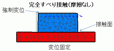 摩擦係数がゼロの場合は従来通りの摩擦を無視した完全すべりの接触解析となります。
