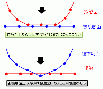 したがって、接触面と被接触面には以下の挙動の違いがあります。