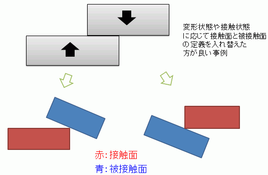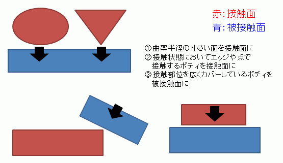 また、以下のように接触状態に応じて接触面と被接触面の設定を入れ替えた方が良い場合もあります。