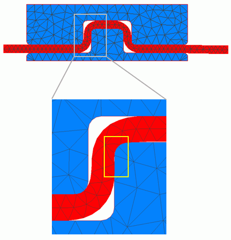 2Dモデルの場合の接触境界設定例(テクニカルノート接触解析の事例の例3のモデル)