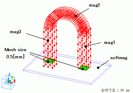 また、磁石の先端面にメッシュサイズを0.5[mm]に設定しています。