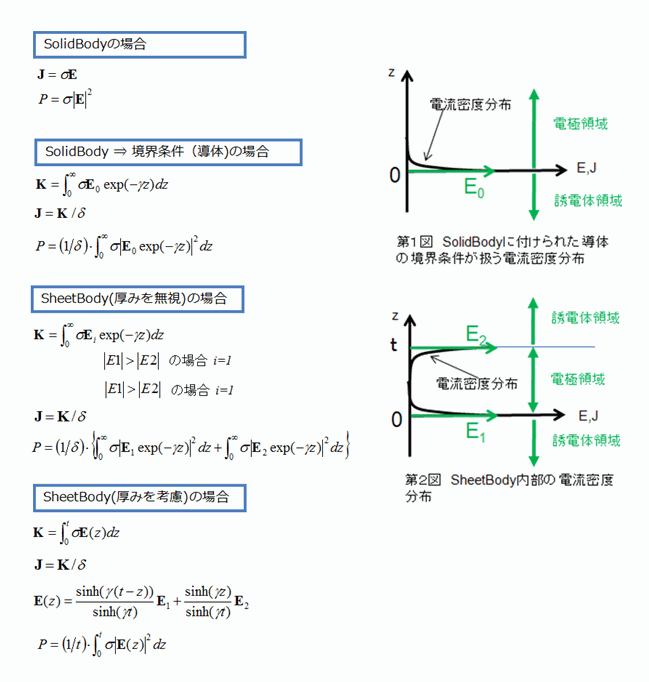説明で使用する文字の意味は次の通りです。σ:電気伝導率、δ:表皮厚み、γ:伝搬定数、t:SheetBodyの厚み。