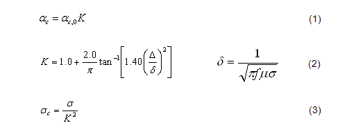 の解析を行っています。下に示した(3)式で、表面の凹凸を考慮した導電率σcを求めています。