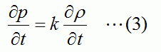 (3)式 : 媒質における密度変化と圧力変化の関係式