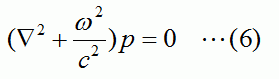 ※ (1)(2)(3)式からヘルムホルツ方程式(6)を導く過程については次項に記します。