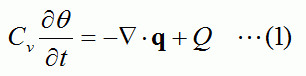 (1)式 : 容積比熱Cvの固体の中で成立する熱量保存則