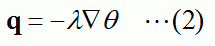 (2)式 : 熱伝導率λの固体の中で成立するフーリエの法則