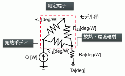 を回路のノード(Femtetでは端子と呼びます)として、熱等価回路を仮定します。