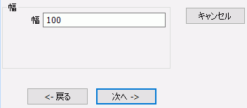 パラメータ入力ダイアログに幅:100を入力し、 をクリックします。